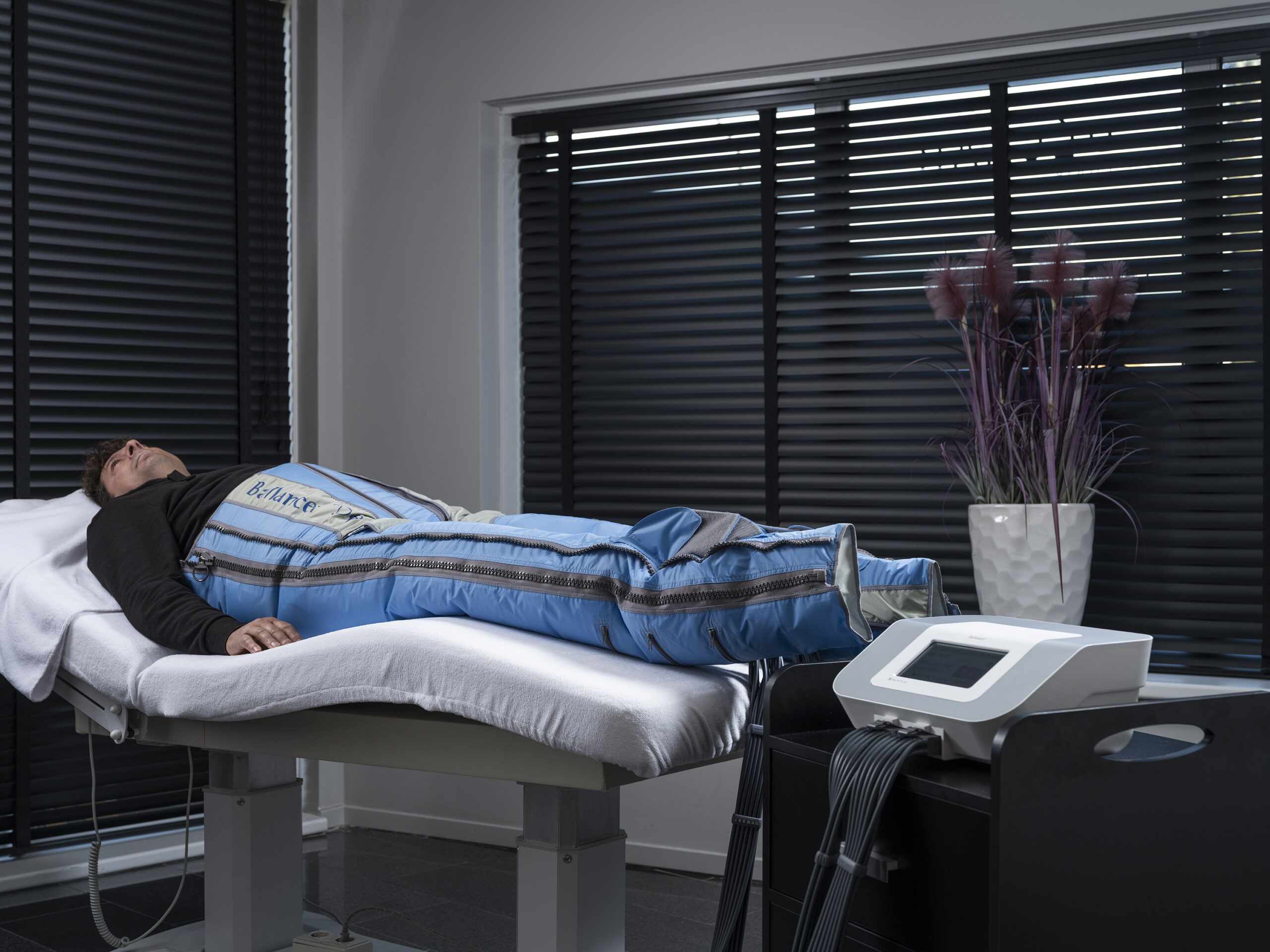 Compressietherapie stimuleert het lymfesysteem om weer op een gezonde manier te werken. De Balancer is als het ware een pak waarin u stevig ingepakt op de behandeltafel ligt.